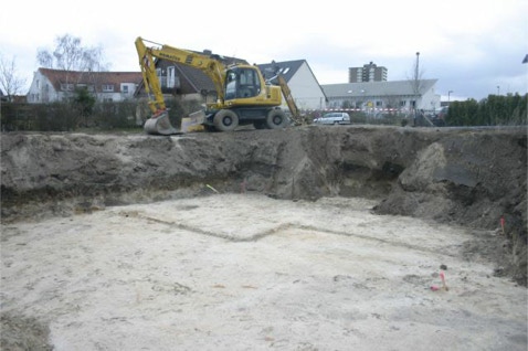 14. Mai - offenbar der Platz für eine Toilette - links für die Badewanne ...