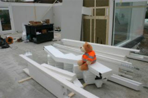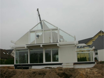 Das muss ich wirklich sagen: In der gesamten Bauphase vom Setzen der Wände nach Fertigstellung des Kellers (denn Erdarbeiten und Keller wurden getrennt vergeben) bis zum fertigen Innenausbau gab es auf der Baustelle nie Leerlauf! Die Organisation der Gewerke war perfekt. Auch durften wir wann immer wir wollten die Baustelle und den „Rohbau“ besichtigen und so sofort kleinere Änderungen einbringen. Viele andere Hersteller erlauben nur sehr eingeschränkten Zugang bis zur Abnahme und Schlüsselübergabe.
