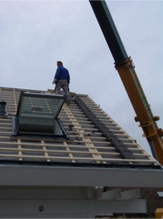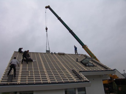 26. April - Jetzt noch die innen liegende Regenrinne einrichten und die Verlattung vorbereiten für die Ziegel, die am nächsten Tag auf dem Programm stehen ...