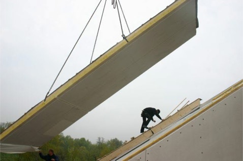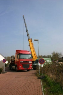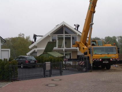 26. April - Die letzte Wand des Dachgeschoss schwebt ein ...