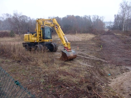 26. April - Nachdem das Wetter am Vortag nach ganz nett war, fing dieser Tag erst mal mit ordentlich Regen an. Das konnte den zügigen Baufortschritt aber nicht wesentlich behindern ...