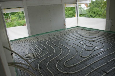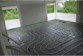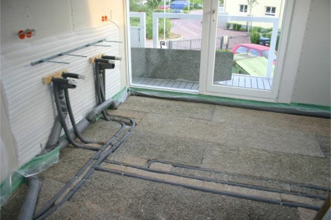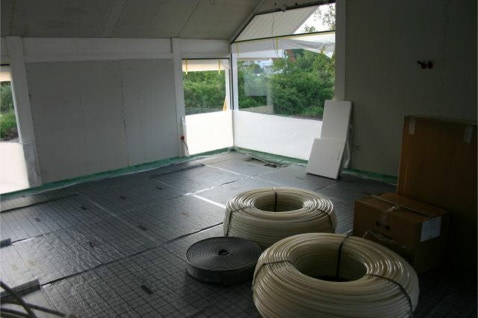21. Mai - die Fußbodenheizung im Erdgeschoss. Man sollte sich die Stellen merken, an denen die Heizschläuche enger liegen - da ist es später wahrscheinlich wärmer ...