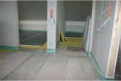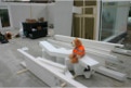 11. Mai - hier zeigt sich die Sanitärinstallation im Bad; links die Dusche, rechts zwei Waschbecken